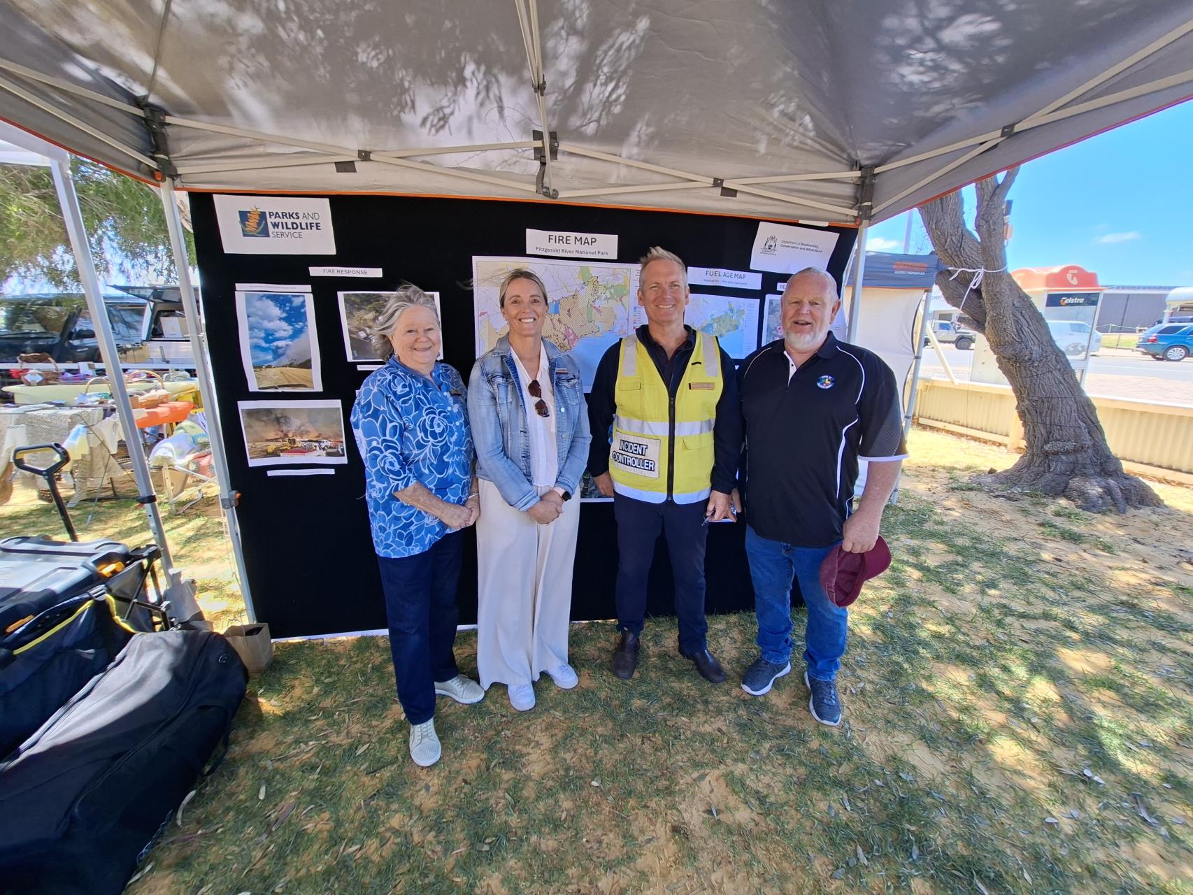 (Pictured: Crs Leighton, Gibson and Auburn with DBCA Incident Controller Richie Boykett at the Hopetoun markets).